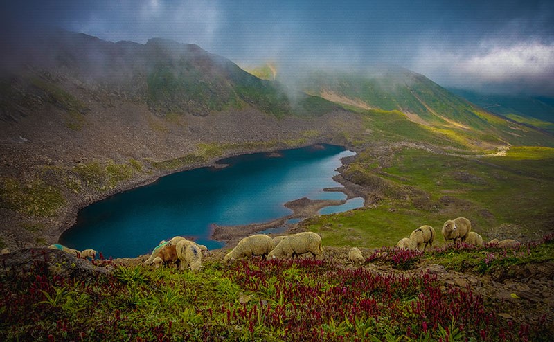 Alpather Lake is a tranquil lake located 13 kilometers from Gulmarg, at the foot of Apharwat hill. This turquoise blue lake is encircled by white snow-covered mountains, like a gem protected by an oyster.