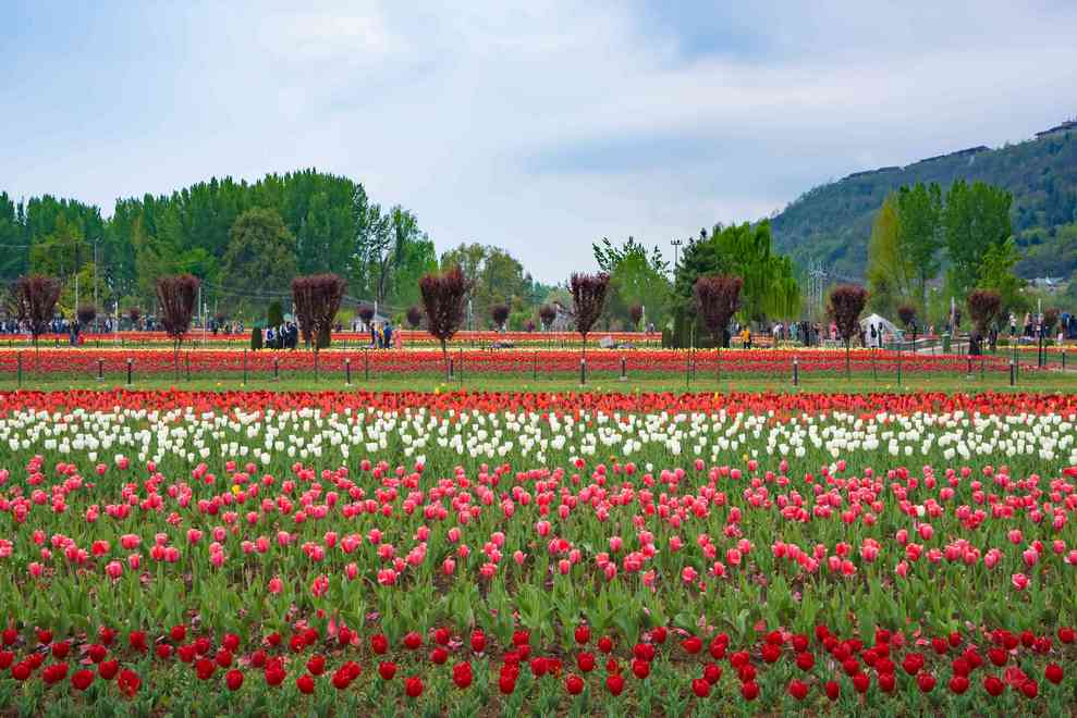 The Indira Gandhi Memorial Tulip Garden, Asia's largest Tulip garden, is a seven-tiered garden on the foothills of the Zabarwan Range, some 13 kilometers from Srinagar's city center.