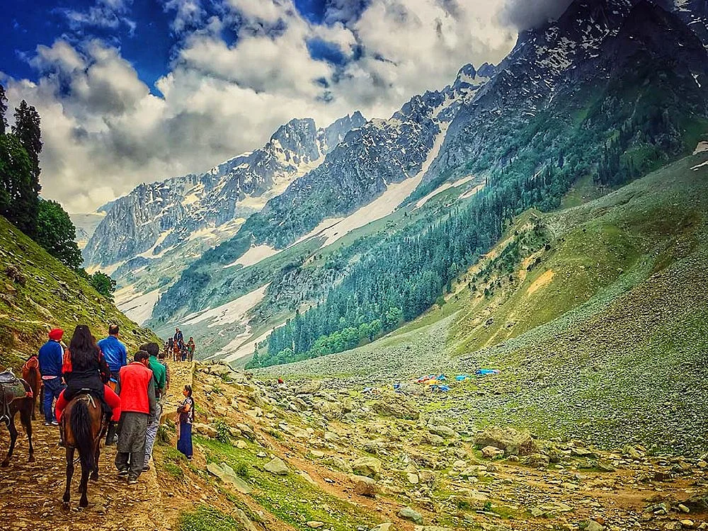 If Kashmir is the crowning glory of the Subcontinent, Gulmarg is the colossal gem in that crown, dazzling with changing hues from season to season. In the spring, exotic blossoms of daisies, forget-me-nots, bluebells, and buttercups dazzle with all the vibrant colors of the color pallet. Autumn changes the tinge to warm yellow and brown. Come winter & the gleam is pure, calm, and fleecy white. Gulmarg is a magical valley located about 50 kilometers from Srinagar, stretching three kilometers in length and up to a kilometer in width with no condescending boundary walls to break up the gorgeous picture. Gulmarg's allure begins even before you arrive, since the road is lined with pine and deodar trees and cuts through the hills. When you set foot on this hill station, you'll be surrounded by tiny lakes, emerald meadows, gushing gardens, enormous snow-capped mountains, bubbling brooks, and interesting slopes.
